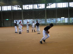 守備練習(ベースカバー)の様子