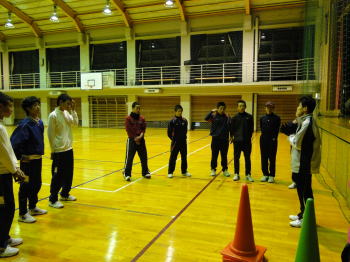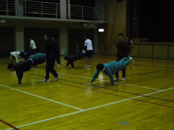 冬場に入り、育成塾トレーニング編でも 『体力づくり』『下半身強化』といったメニューが 増え、塾生にとっても厳しい時期に突入しました。 『体力づくり』となると、やはり 基礎トレーニングメニューの強化が 重要になってきます。 指導を受ける塾生たちは 歯をくいしばって一生懸命取り組んでいました。 |